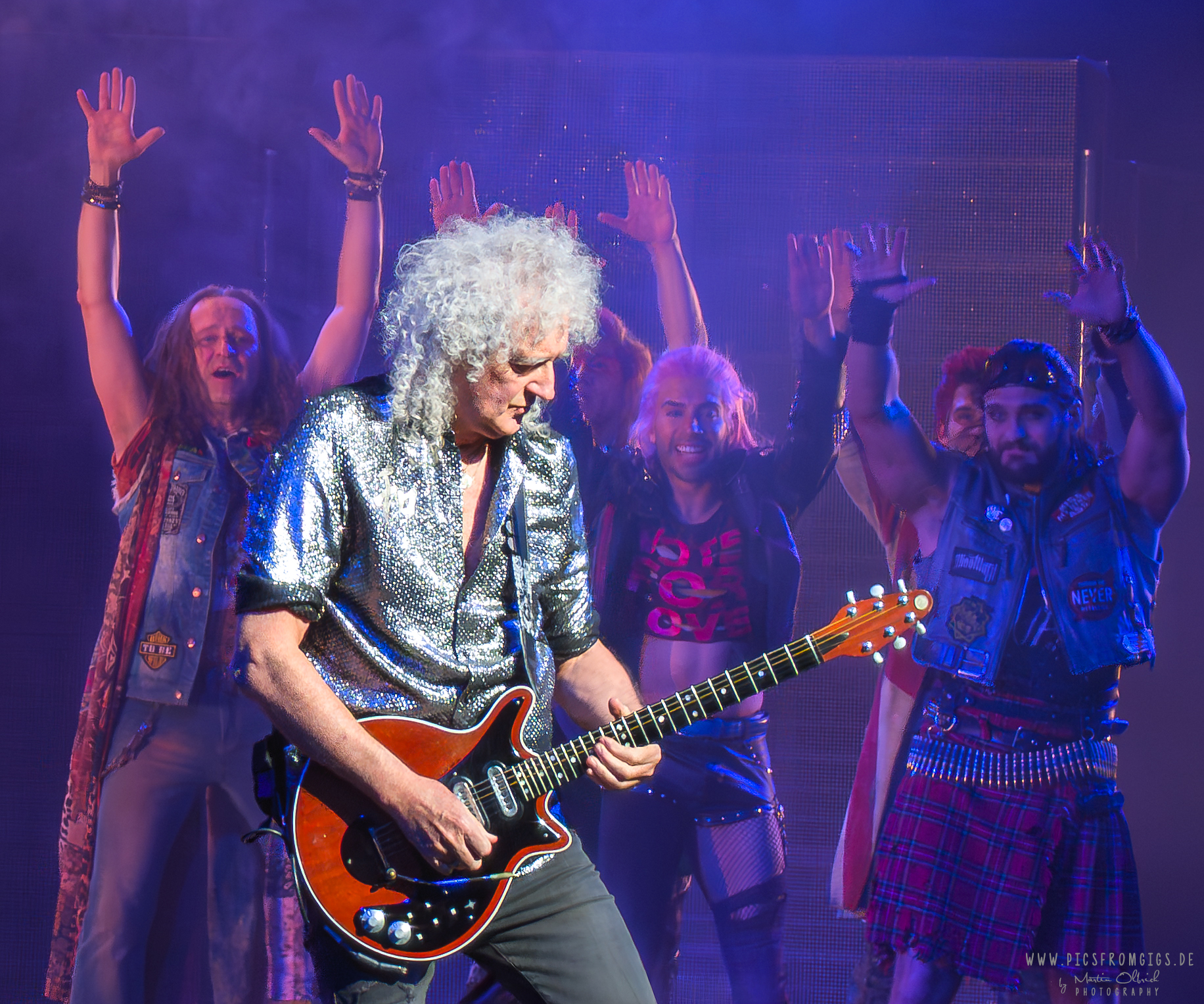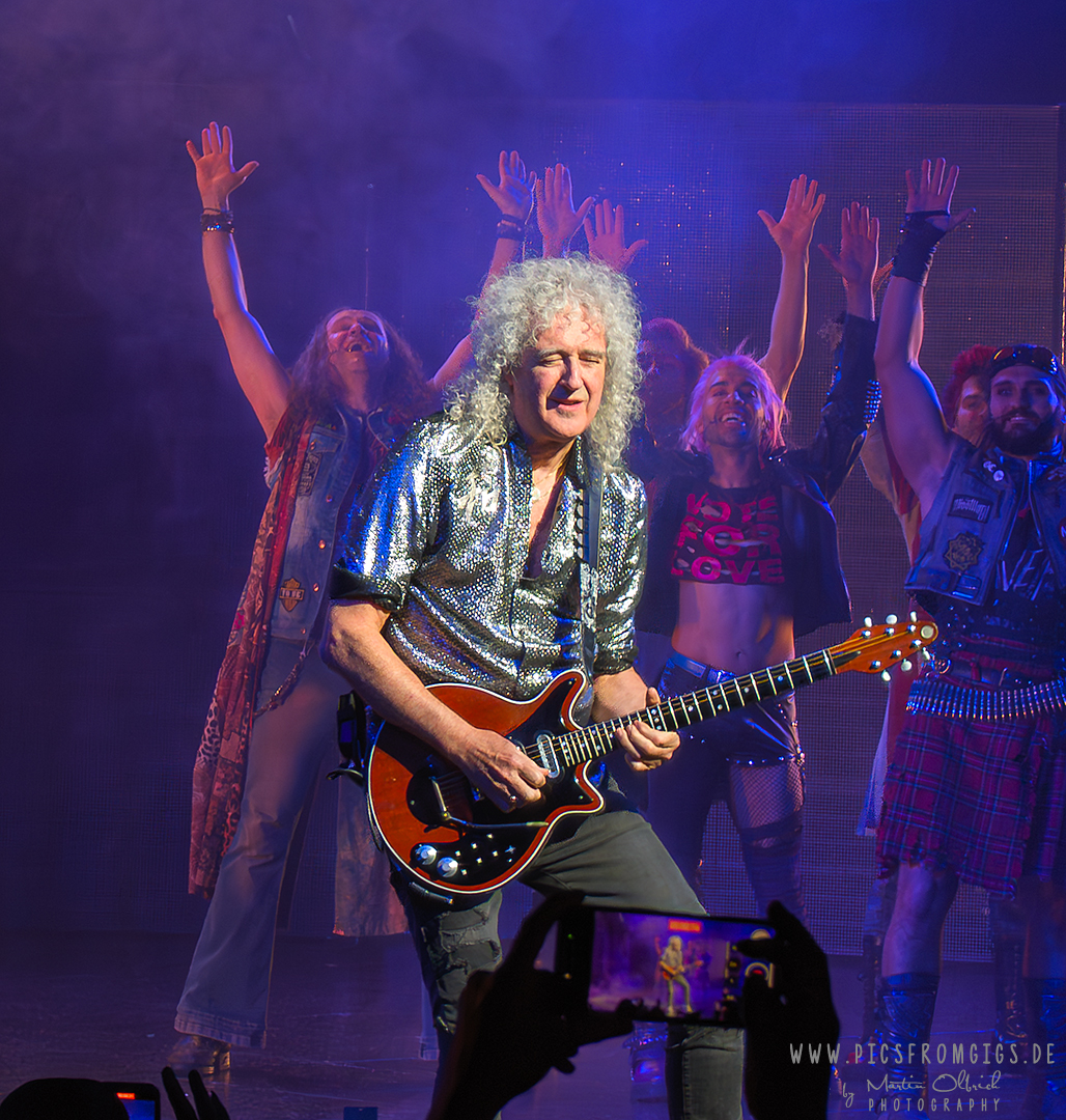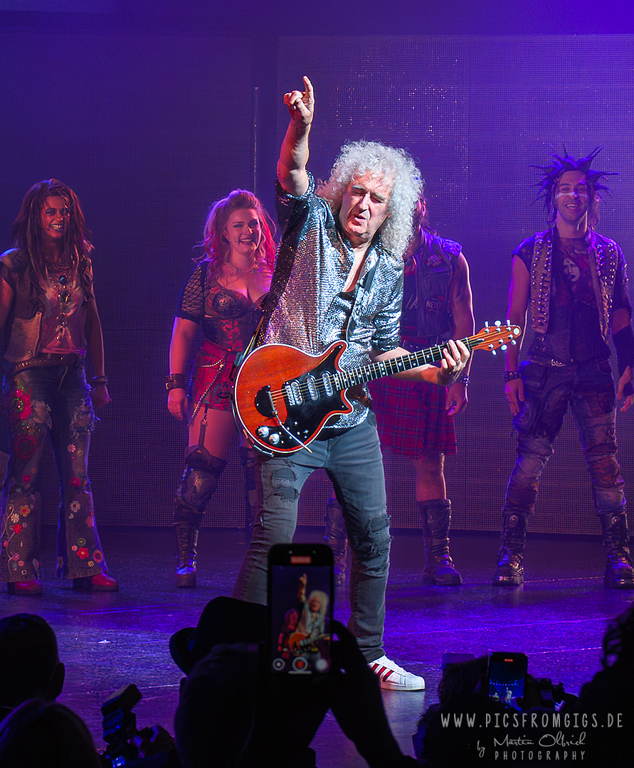 Ein Höhepunkt des Abends, der für kollektives Staunen und Begeisterung sorgte, war der Überraschungsauftritt von Queen-Gitarrist Sir Brian May selbst. Die Rock-Legende betrat die Bühne zum Zeitpunkt des Finales und spielte das ikonische Solo aus „Bohemian Rhapsody,“ was das Premierenpublikum zu frenetischem Jubel hinriss.